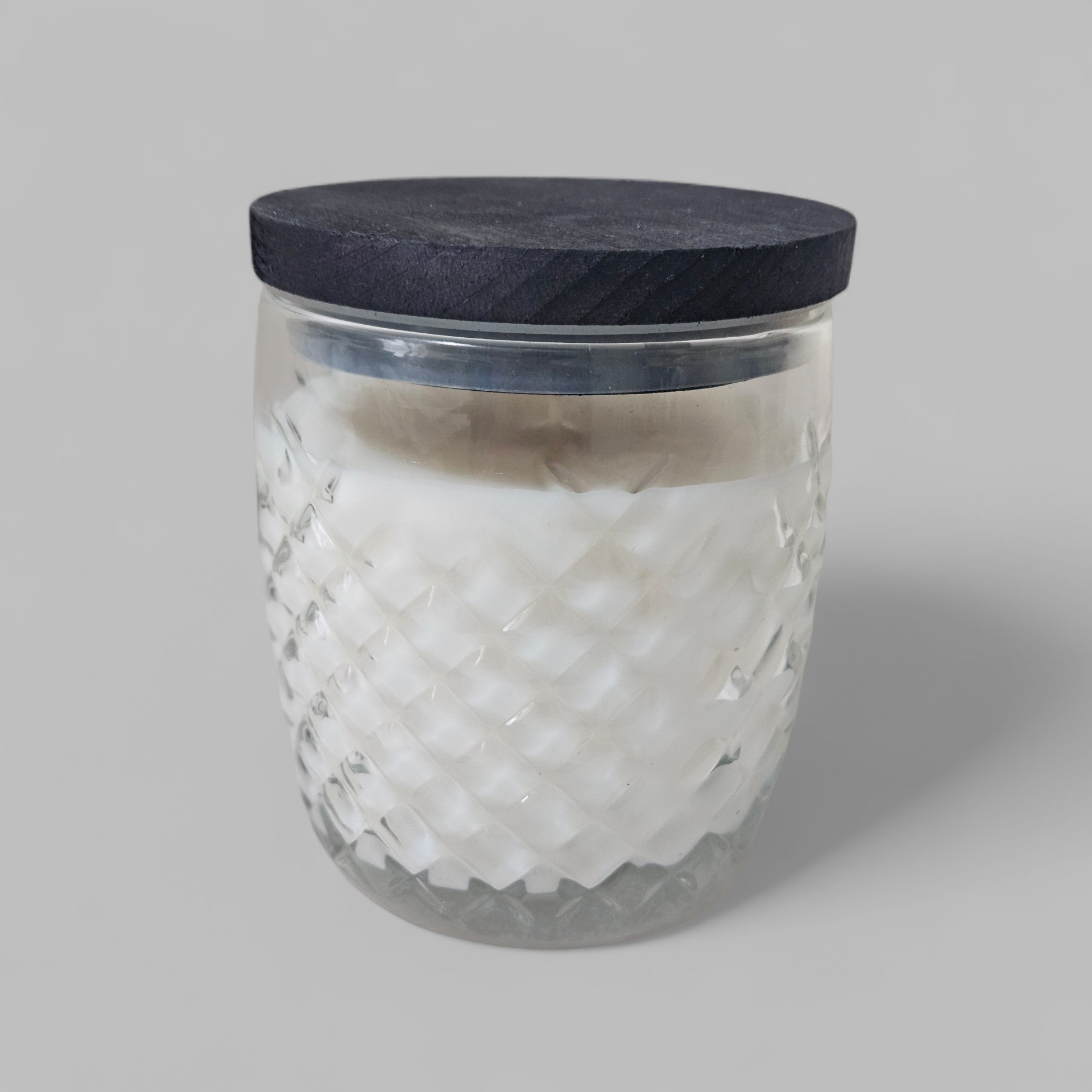 Hand poured coconut apricot wax in this 10oz glass jar with wood lid.