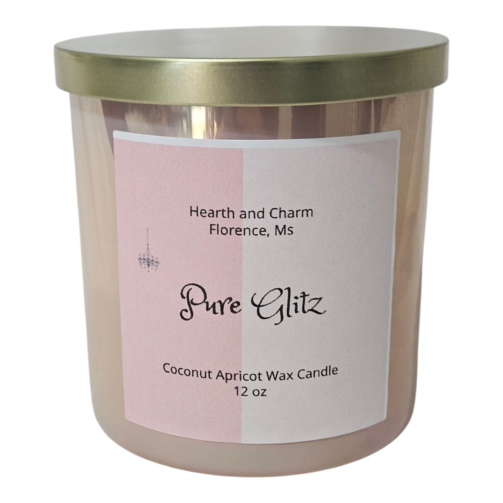 hand poured coconut apricot wax in 12oz pink iridescent glass jar.